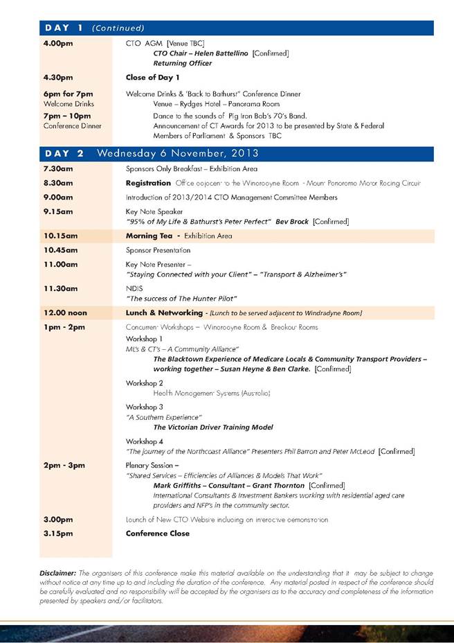 To advise Council of the 2013 Community Transport Organisations (CTO) Annual State Conference.