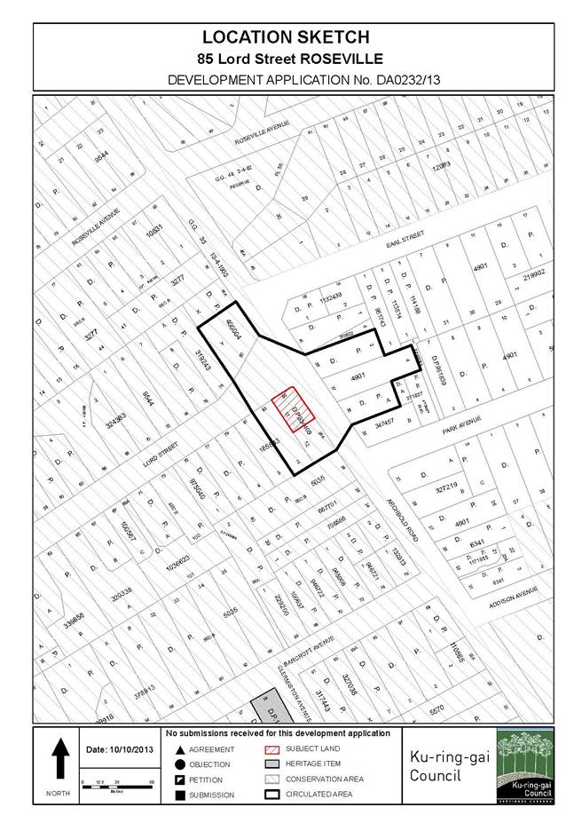 To determine Development Application No.0232/13 for alterations and additions at 85 Lord Street, Roseville.