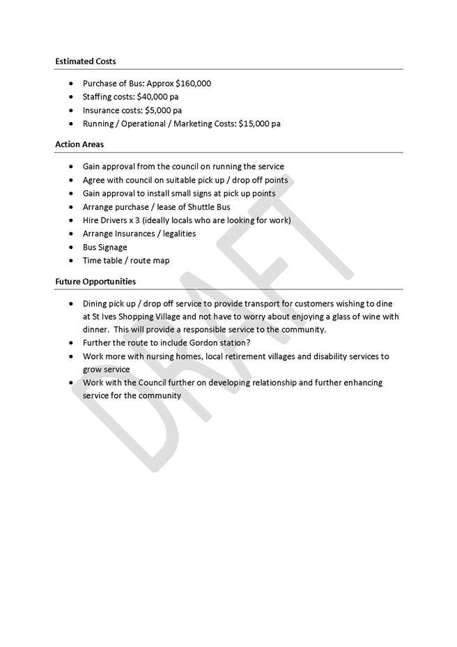 3. That a staff report regarding the implementation of the St Ives Shuttle Bus Service be submitted to the Council meeting of 19 November 2013 for Council’s further consideration.”