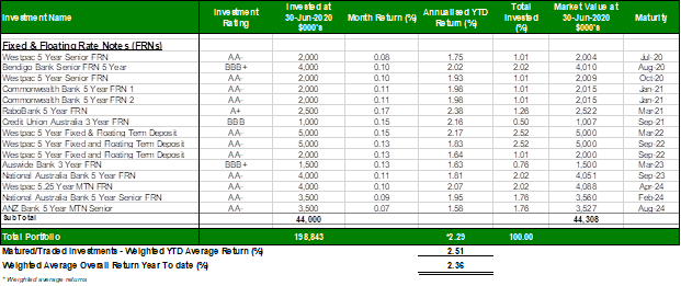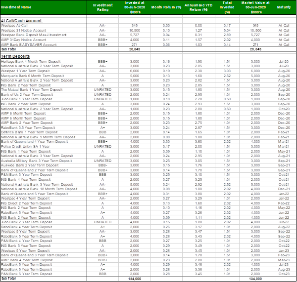 That the summary of investments performance for June 2020 be received and noted; and that the Certificate of the Responsible Accounting Officer be noted and the report adopted.