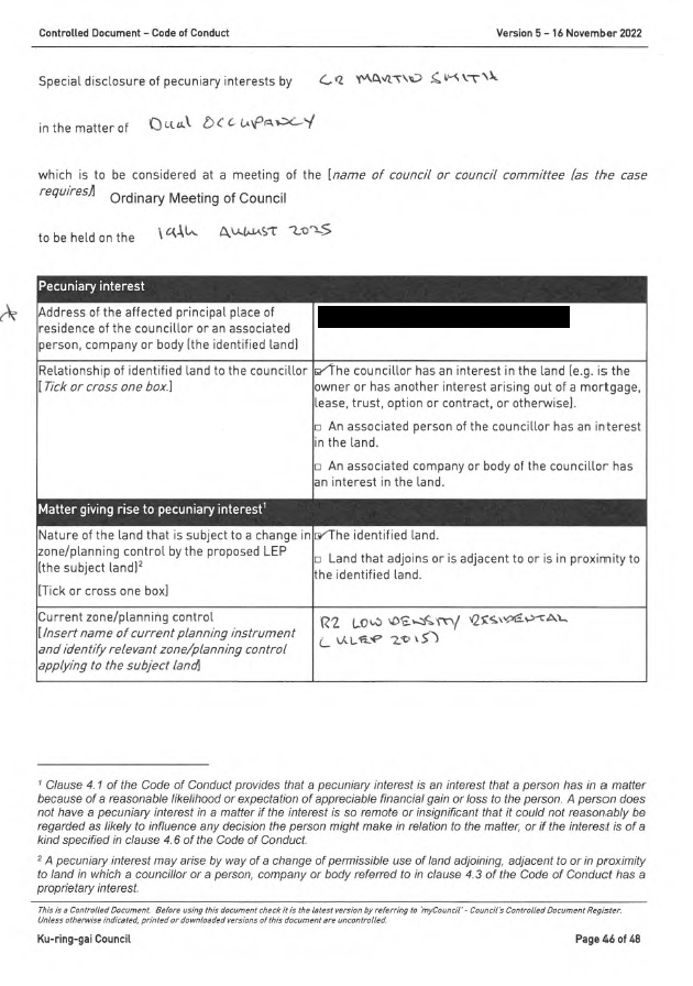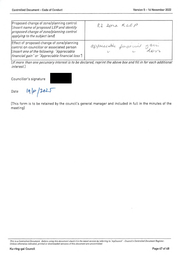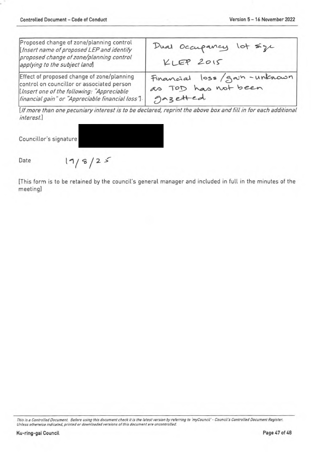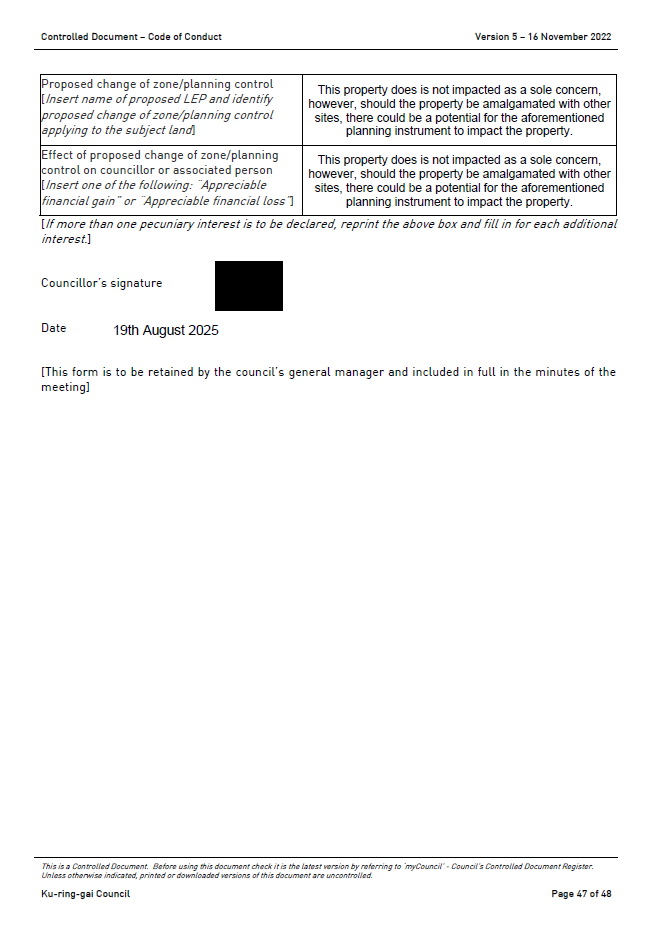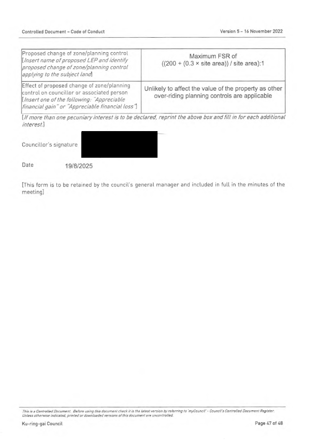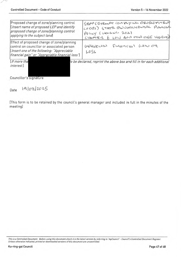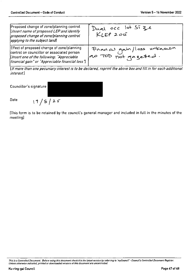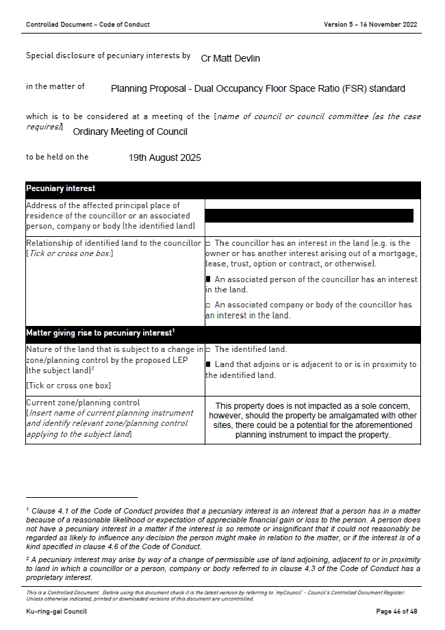 Councillor Devlin declared a special disclosure of pecuniary interest in GB.16 due to his interest in his parents residence that may be impacted by the proposed planning controls. Councillor Devlin tabled a special disclosure of pecuniary interest under clause 4.36(c) of the Code of Conduct and will remain in Chambers during this debate.