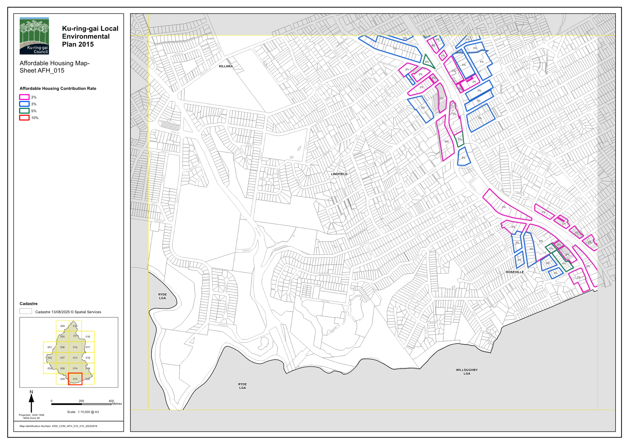 - Affordable Housing Map on certain lands (including Council owned land) on Marian Street, Lorne Avenue, Culworth Avenue, Killara
