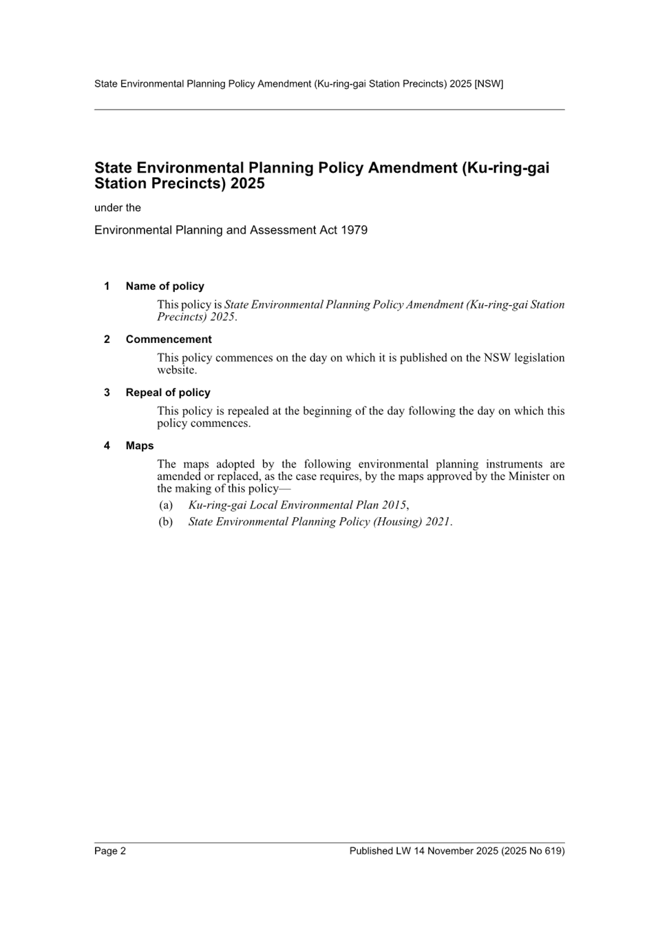 State Environmental Planning Policy Amendment (Ku-ring-gai Station Precincts) 2025 - 14 November 2025 |