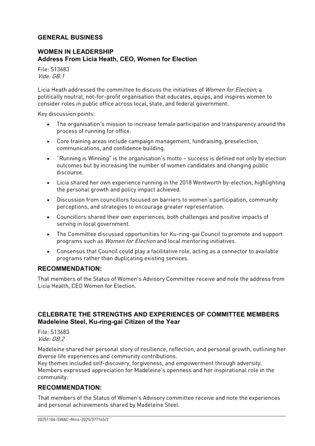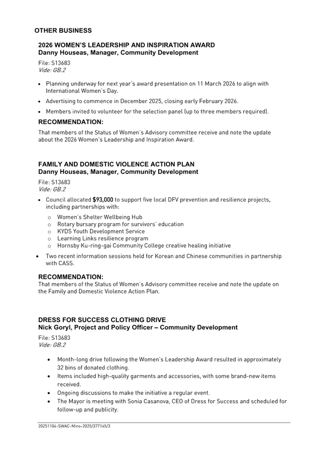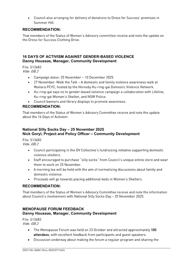 GB.3 Status of Women's Advisory Committee - Minutes of Meeting Tuesday 4 November 2025 102