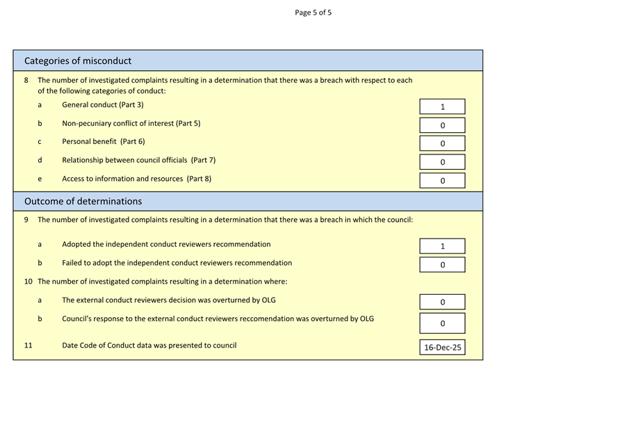 GB.5 Code of Conduct - Complaint Statistics 118