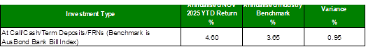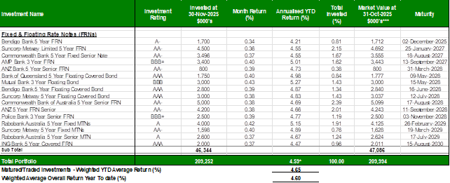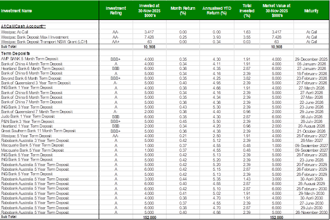To present Council’s investment portfolio performance for November 2025.