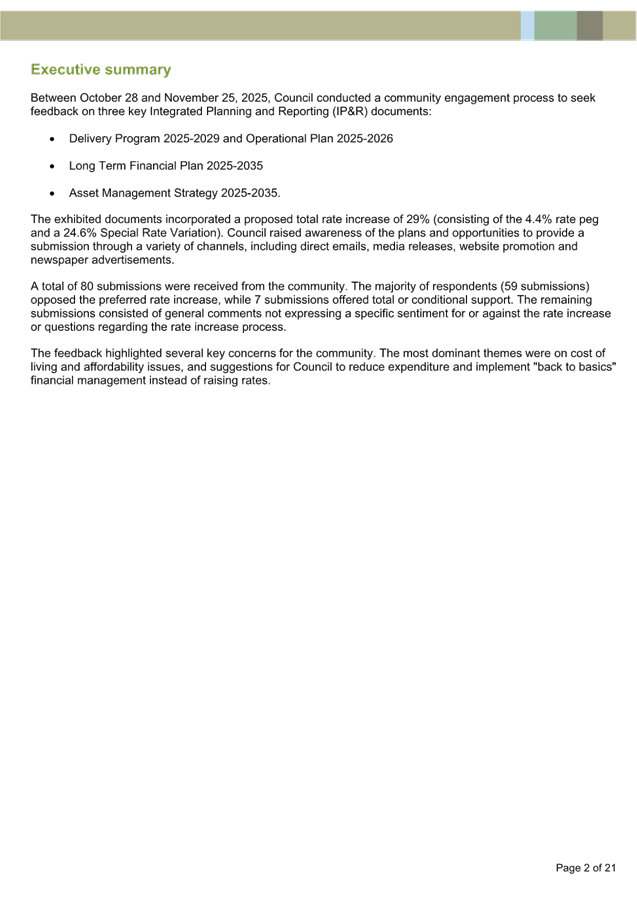 In October 2024, community consultation results indicated the majority of respondents (71%) were in support of the proposed Evie Networks EV charging infrastructure at Coonanbarra Road. Subsequently, at the 17 December 2024 OMC, Council resolved to progress the necessary approval assessments and negotiation of commercial terms required for the development of EV charging infrastructure at Coonanbarra Road and that, subject to assessment and negotiation of commercial terms, Council approves the development and installation of the proposed chargers at the premises. Following the public notification period for the licence, five (5) submissions were received including three (3) objections. |