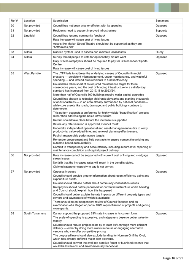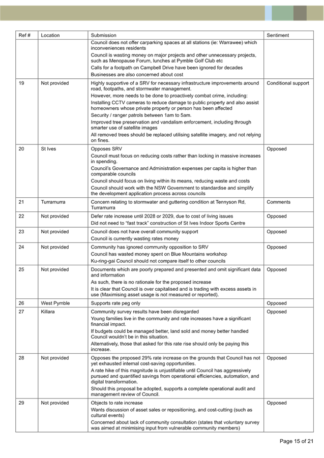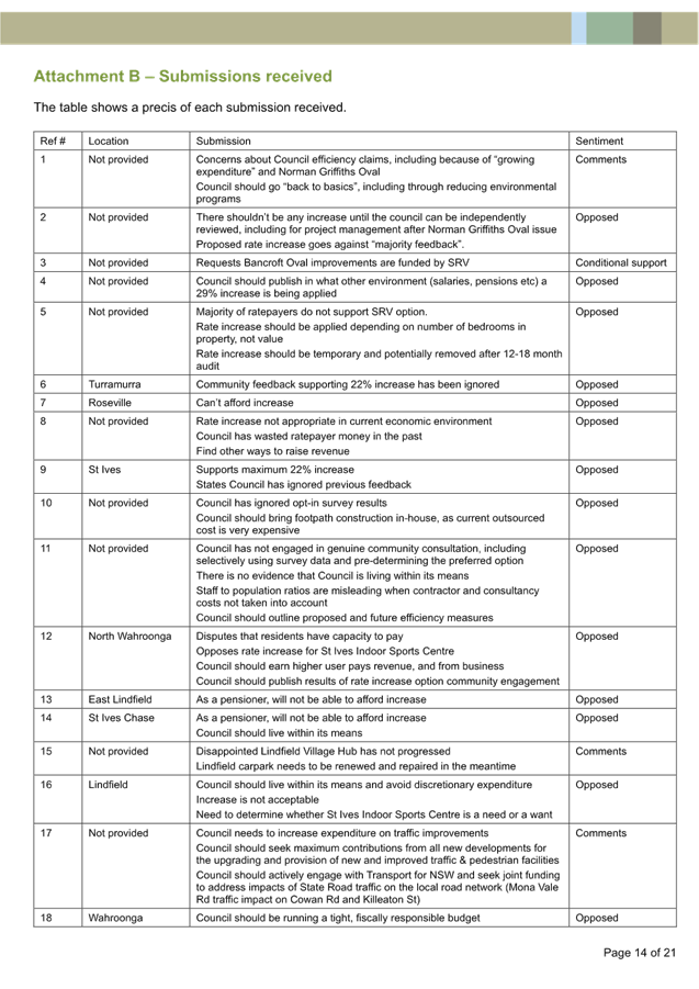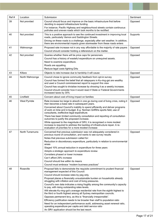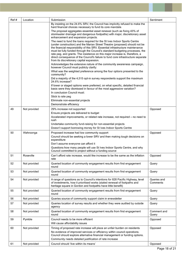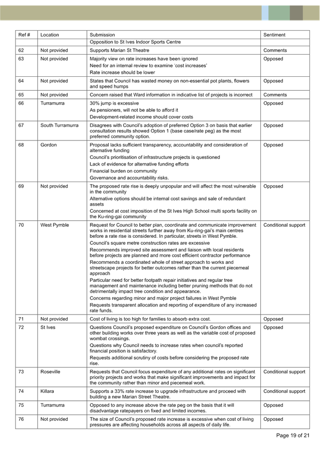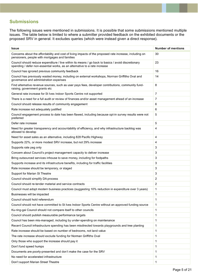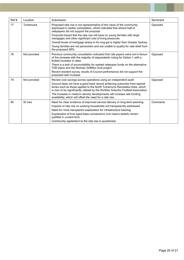Submission Summary Table - 77 Kulgoa Rd Pymble |
