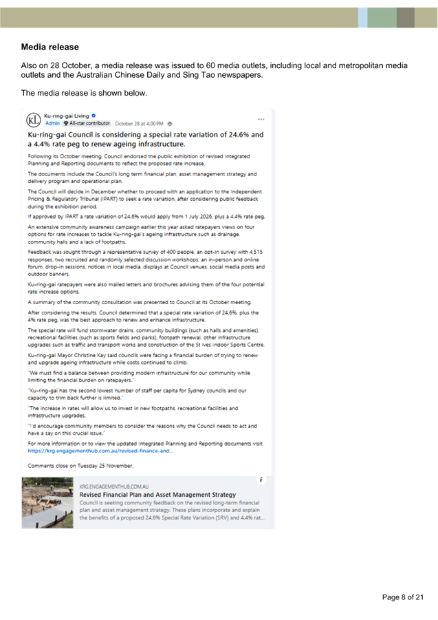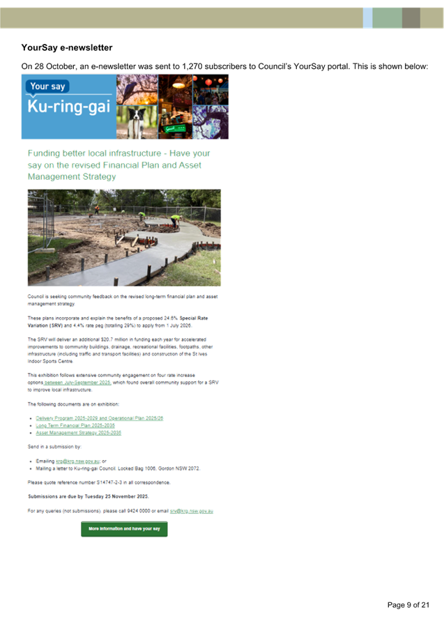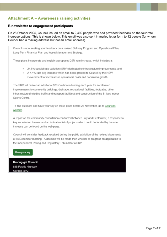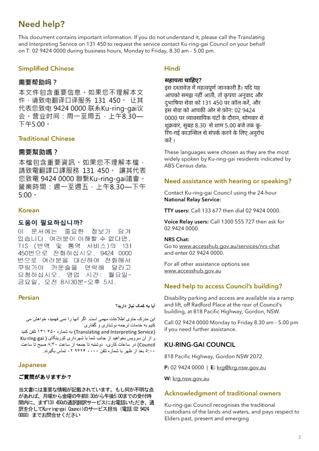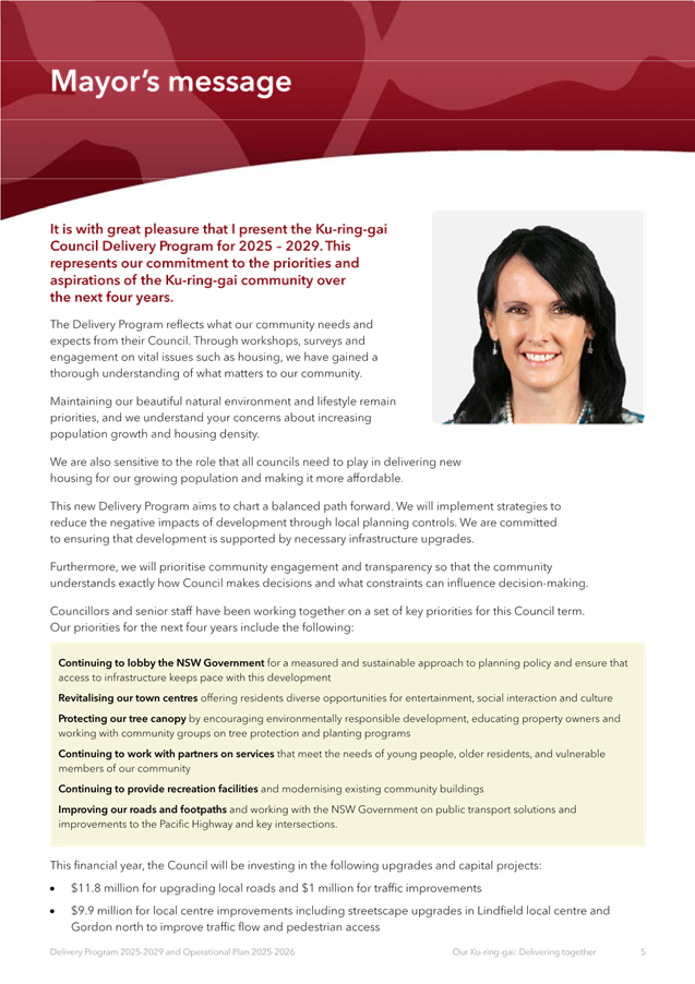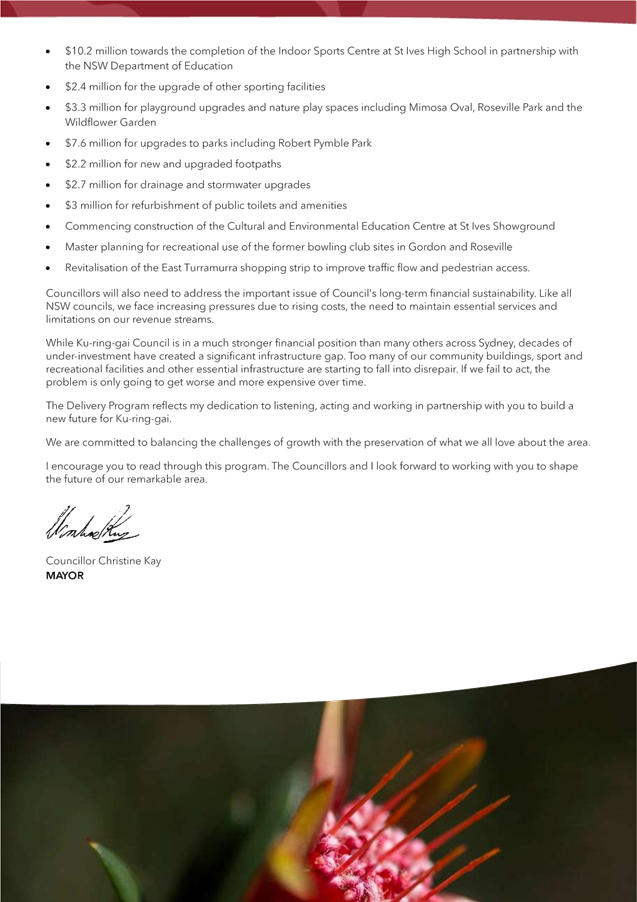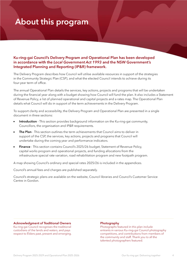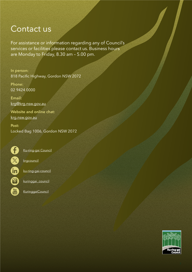 Disclaimer: All Ku-ring-gai Council Ordinary Meetings of Council are livestreamed for on-demand viewing on the KRG website. Although Council will do its best to ensure the public is excluded from the livestream, Council cannot guarantee a person’s image and/or voice won’t be broadcast. Accordingly, attendance at Council meetings is considered consent by a person for their image and/or voice to be webcast. Council accepts no liability for any damage that may result from defamatory comments made by persons attending meetings. As per clause 15.21 of Council’s Code of Meeting Practice, a person must not live stream or use an audio recorder, video camera, mobile phone or any other device to make a recording or photograph of the proceedings of a meeting of the council or a committee of the council without the prior authorisation of the council.