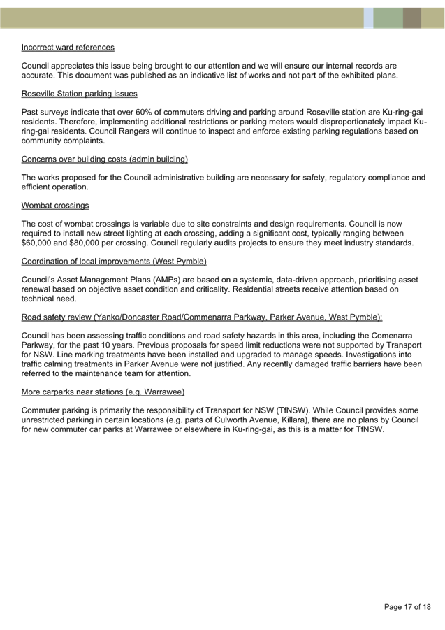 In the interest of public safety, we respectfully request that Ku-ring-gai Council: