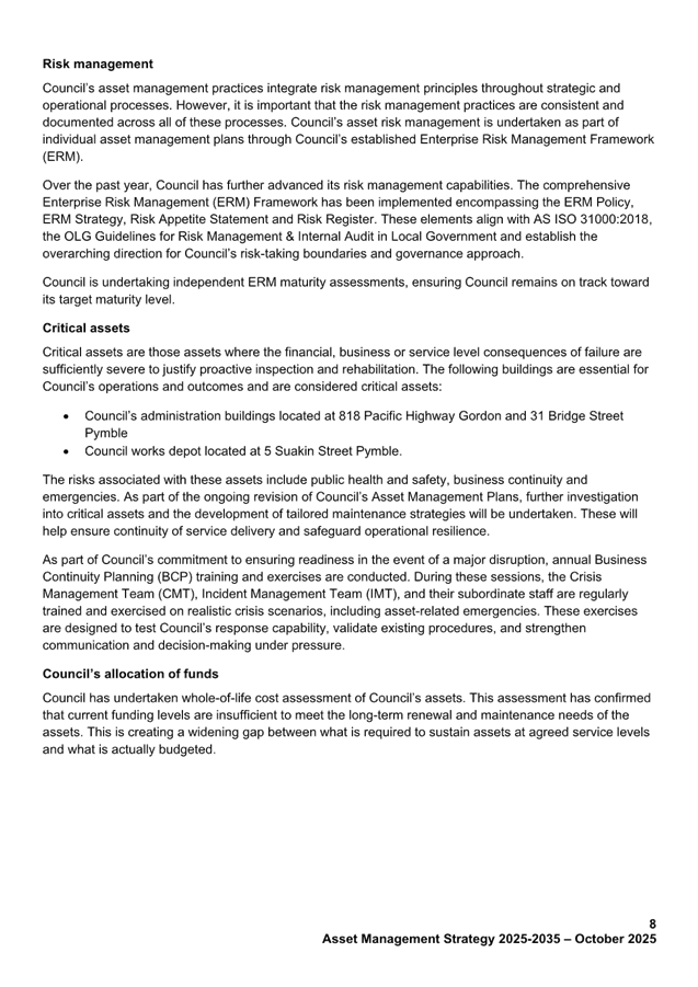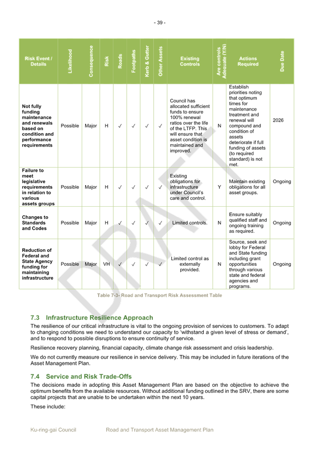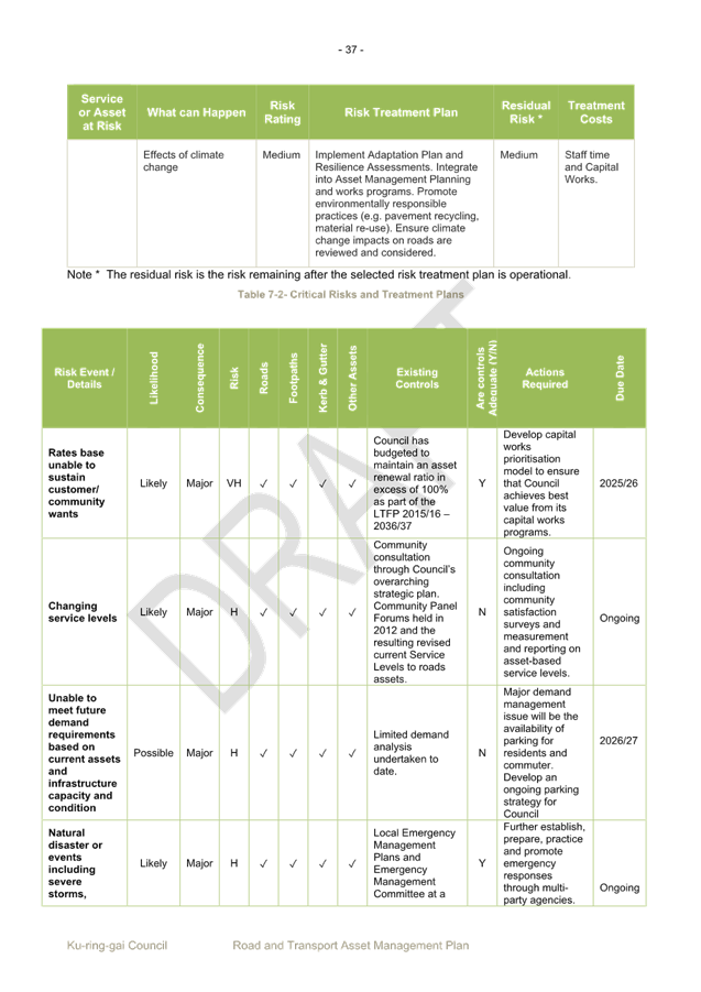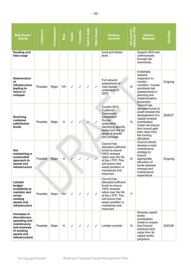 Additionally, the internal policies and procedures currently in place are effective in managing these risks. Such procedures include community consultation, design and traffic review, environmental assessment, licence negotiations. After considering the adequacy of internal controls, the key risks identified are Within Appetite.