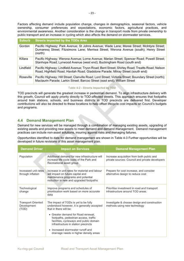 Based on past traffic surveys for this carpark, it is estimated that peak utilisation is 90% between 10am – 2pm on weekdays. Notwithstanding this, the four spaces proposed to be converted to electric vehicle charging bays account for 2% of the total parking spaces (excluding accessible parking bays) – less than the proportion (5%) of electric vehicles in the Ku-ring-gai LGA.