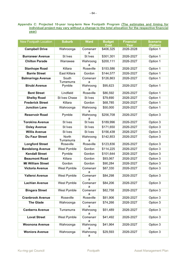 1. Construct a proper, continuous concrete footpath on both sides of St John’s Avenue, covering at minimum the section between Gordon Golf Club and the area near Handprints Killara (as shown in the attached map);