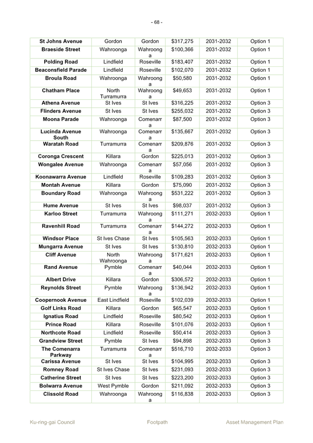 PT.1 Urgent request for installation of footpaths on both sides of St John's Avenue, Gordon 59